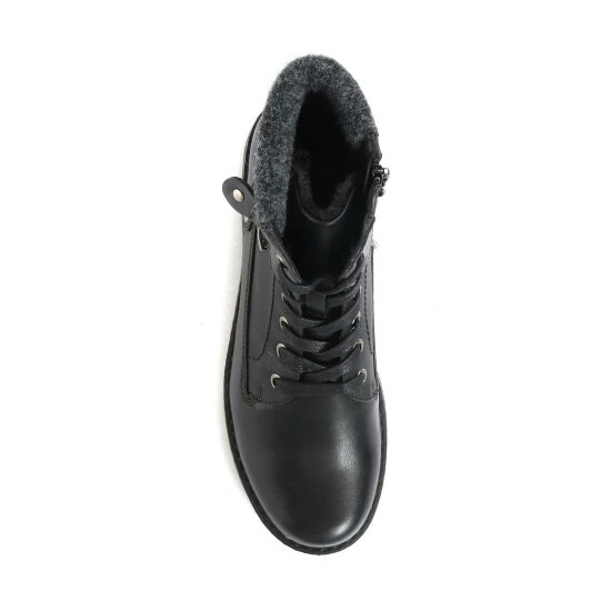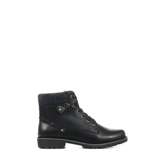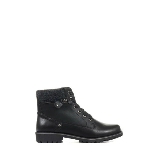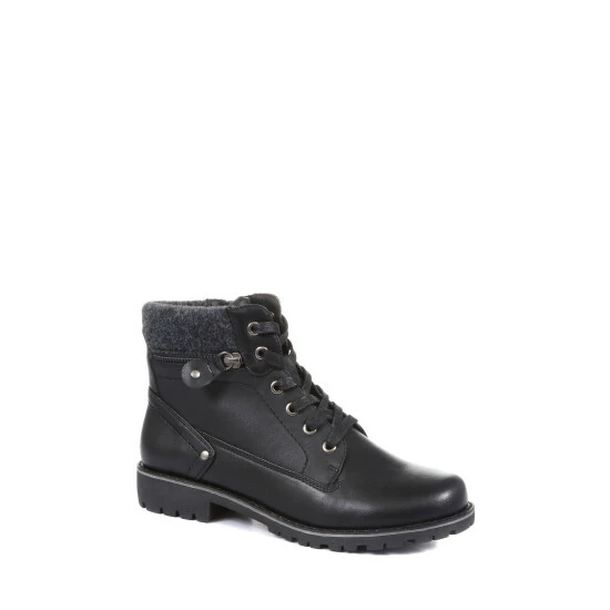 Perfect for a weekend adventure in the great outdoors or a winter walk to a pub lunch, these ladies’ ankle boots are crafted from smooth uppers for a sleek and premium look. Styled with a panel of front-facing lacing, the boots feature a discrete inside zip which allows for easy put on. For a touch of biker-chic the boots are styled with subtle metallic detailing and a faux zip, whilst the knitted ankle cuff gives a cosy finish.