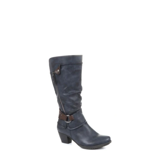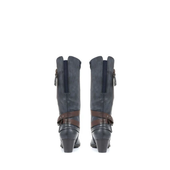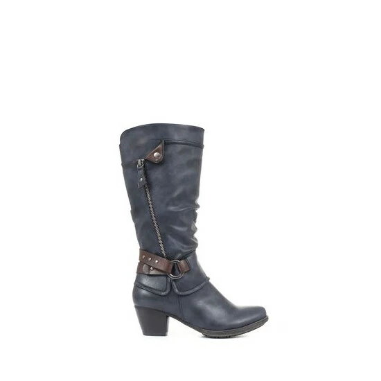 The perfect way to add a touch of glamour to your everyday looks, these ladies’ boots are imagined in a tall silhouette, perfect for pairing with jeans and dresses alike. Styled with a slouched profile, the boots have a relaxed look and are decorated with a contrasting ankle strap and metallic-toned hardware. Poised upon a low stacked heel, the boots are secured with a full-length inside zip.
