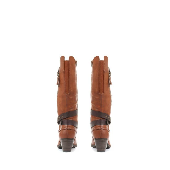 The perfect way to add a touch of glamour to your everyday looks, these ladies’ boots are imagined in a tall silhouette, perfect for pairing with jeans and dresses alike. Styled with a slouched profile, the boots have a relaxed look and are decorated with a contrasting ankle strap and metallic-toned hardware. Poised upon a low stacked heel, the boots are secured with a full-length inside zip.
