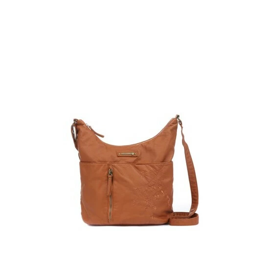 Bringing a floral flourish to the changing season, this ladies handbag is created with butter-soft faux leather and beautifully detailed with a stitched flower emblem. Complete with a central zip close compartment, a magnetic clasp front pocket and adjustable strap.