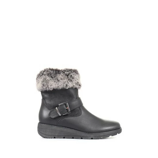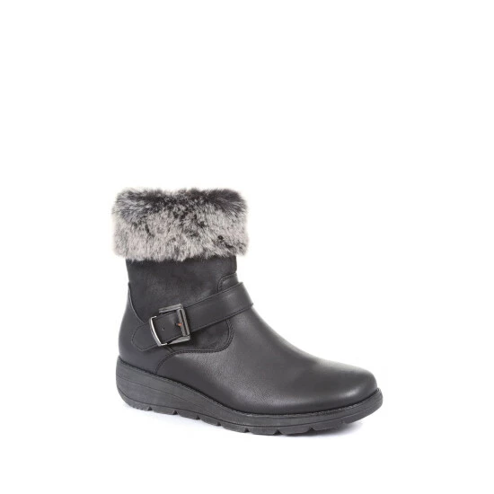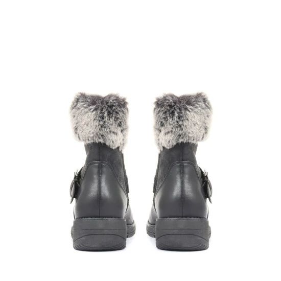 The perfect way to stay cosy and chic during the cooler months, these ladies ankle boots are a glamorous choice for daytime and evenings alike. Crafted with a sleek and streamlined silhouette, these boots are decorated with a single strap and metallic buckle. Secured with an inside zip, the boots are topped with a faux fur cuff for a show stopping look.