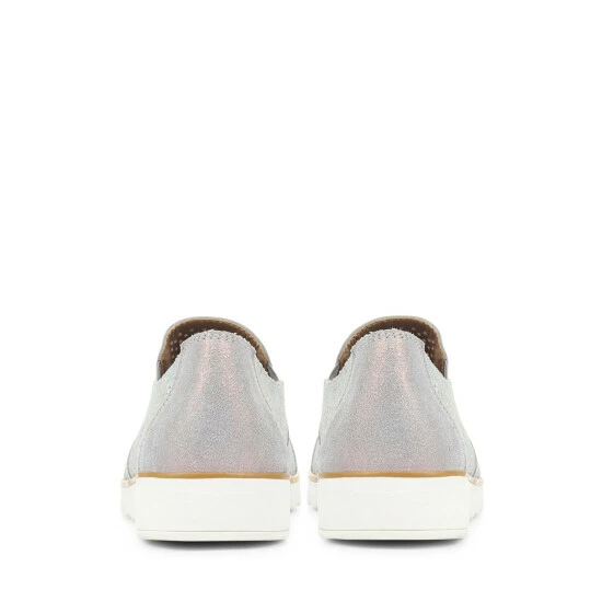 A contemporary twist of a classic slip-on style, metallic leather is decorated with an eye-catching cut-out design. Resting on an extra light contrast sole it adds a shimmering option for your dressed down days, a metallic toe cap completes the revitalising spring style.