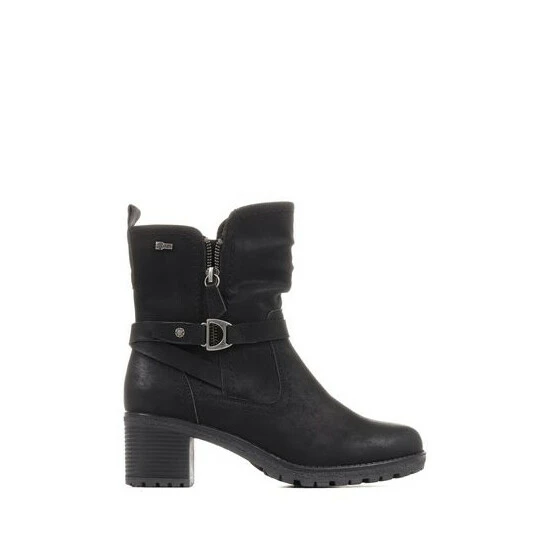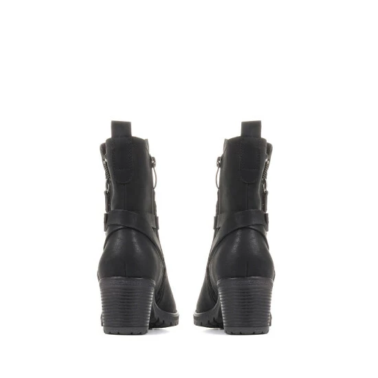 These chunky biker boots will elevate your cold-weather looks with ease, thanks to their comfortable block heels. Made with ruched uppers, and decorated with an outer zip and strap detailing, the boots are easily fastened by the inside zip. Lined with soft textiles and a cushioned footbed for a snug fit, the flexible outsole features shock-absorbing properties to help you stay one step ahead where comfort is concerned.