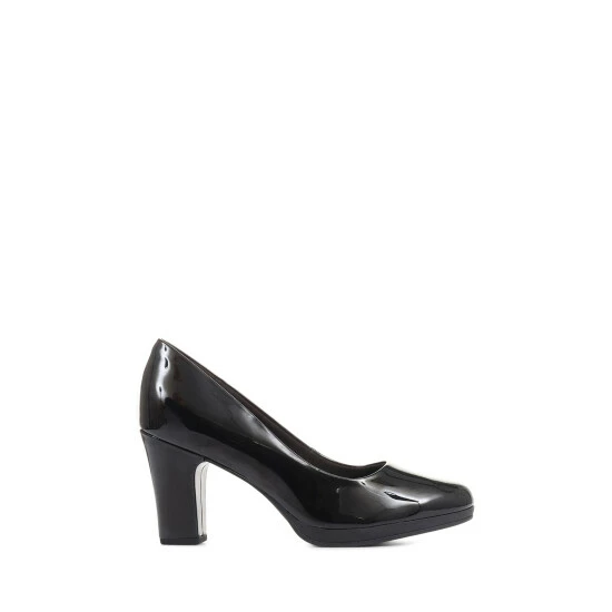 Classic court shoes are a must for any woman s wardrobe line-up. Serving style and comfort, these court shoes are styled with plain uppers in a softly rounded-toe silhouette that makes them adaptable to any occasion. Based on a sturdy block heel, the contoured and cushioned insole features arch support to help spread the weight across the foot, preventing aches and pains.