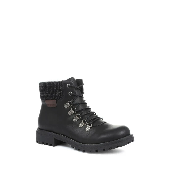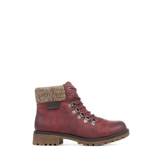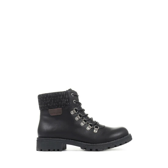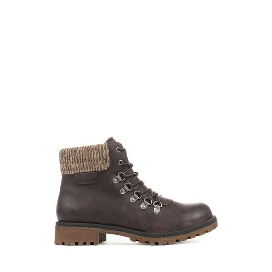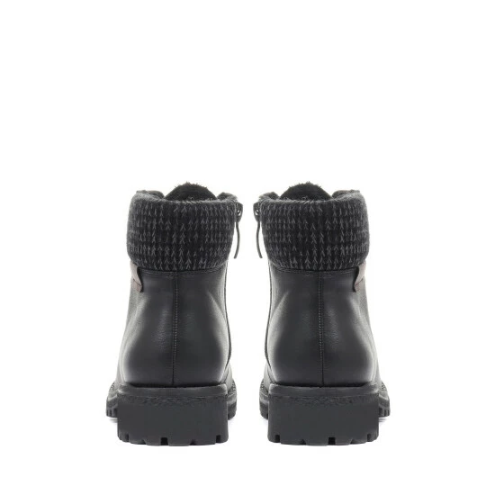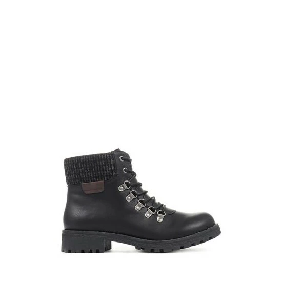 Tackle the trail with snug, cosy comfort our lace-up ankle boots take inspiration from the classic hiker boot trend. These sturdy ankle boots provide excellent support and cushioning around the ankle with its knitted cuff whilst the deep-cushioned footbed ensures excellent underfoot comfort, complete with a deep cleated commando tread sole and simple side -zip fastening.
