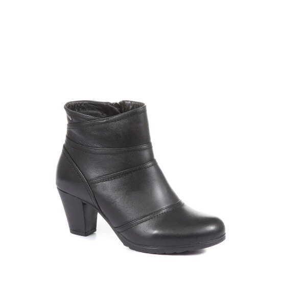Elegant and understated, these ladies’ ankle boots are crafted from beautiful quality leather in a flattering silhouette. Poised upon a comfortable block heel, the boots are encased in panels of leather creating a dynamic profile. Lined with a supple leather insock and soft textile linings, the boots are secured with an inside zip for a comfortable fit.