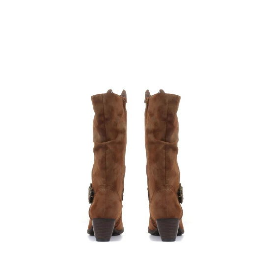 A smart addition to your casual style, the calf boot sits on a short block heel to elevate your everyday wear. Crafted with a mix of synthetic leathers and detailed with an eye-catching buckle strap with decorative faux zip, featuring soft lining for extra snug during chilly days.