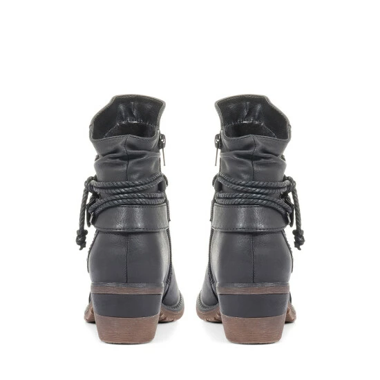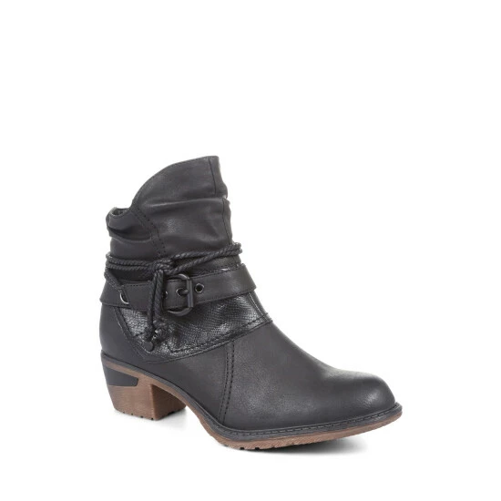 Crafted from beautiful faux leather, these casual boots are the perfect style to add a touch of rock chick to your looks. Imagined in an ankle boot silhouette, the boots are imagined in a slouch style for an off-duty look. Poised upon a low block heel, the boots are decorated with textile ankle straps for a look that is interesting from every angle.