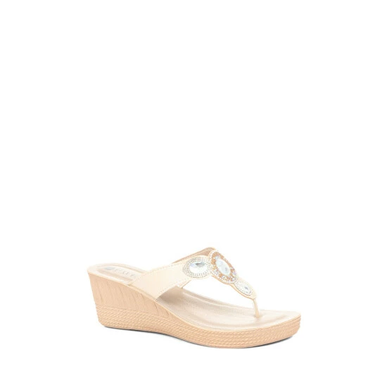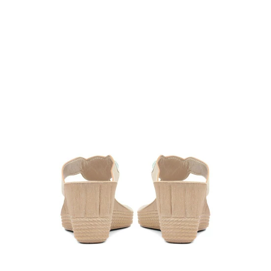 An elegant wedge toe post which simply oozes holiday glamour. This will take you through from day to evening in total style and comfort with a touch of sparkle too. The upper is gently cushioned and the toe post sits in just the right position to give you comfort and style all summer long.