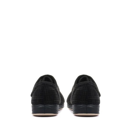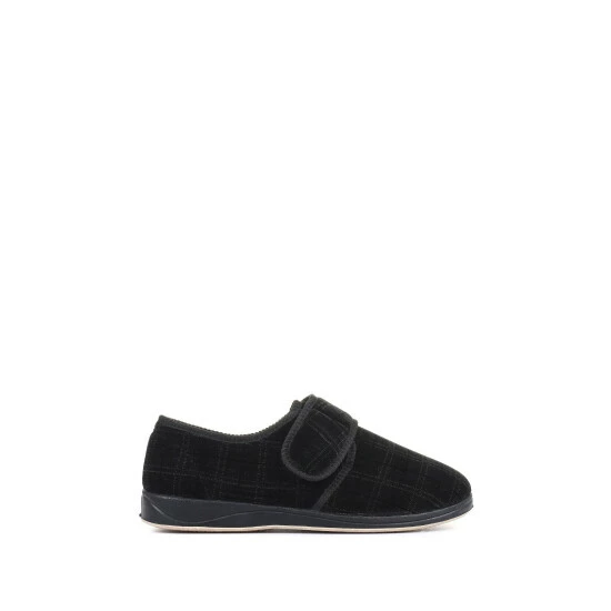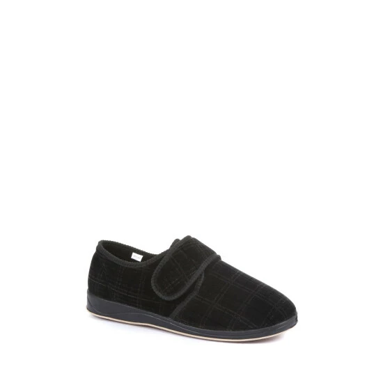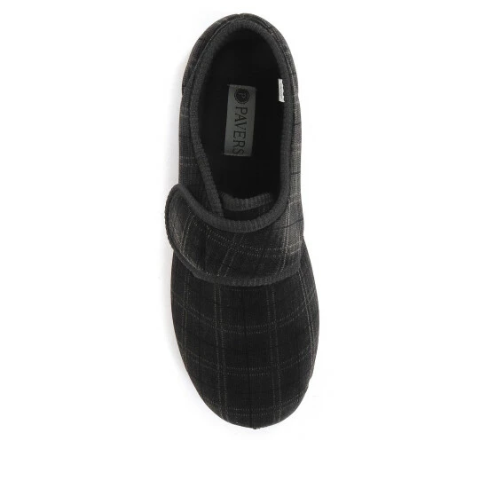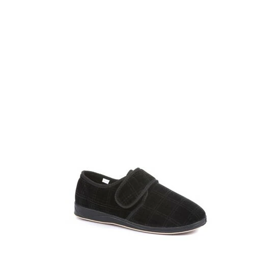 Experience total comfort in these wide-fitting slippers. Created from a soft check material, they boast memory foam insoles and touch-fastening straps for extra adaptability.
