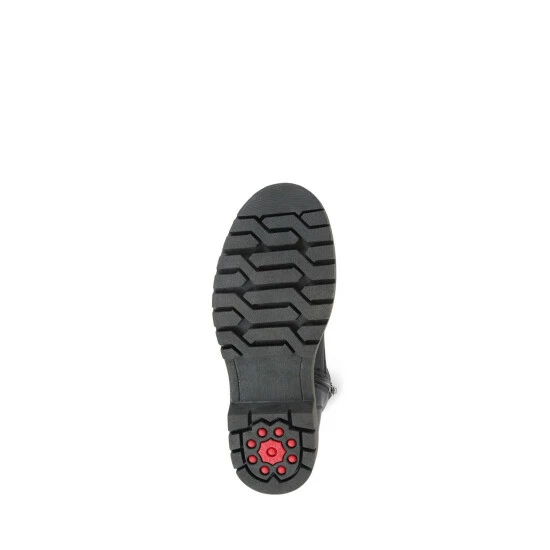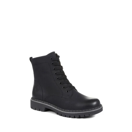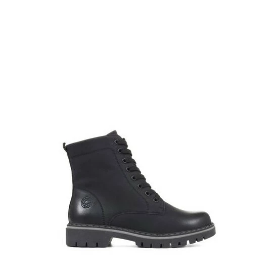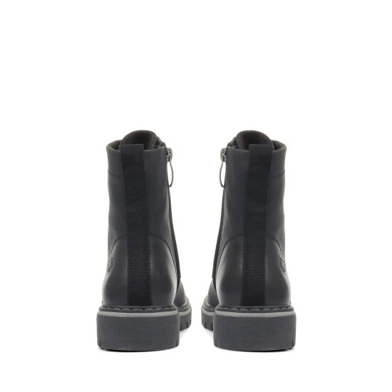Minimal in design but maximum on impact, these ladies’ ankle boots are imagined in a classic lace-up silhouette. In order to keep the lacing styled and aid easy application, the boots feature a discreet inside zip. Designed in a simple and streamlined round-toe silhouette, the boots are layered across a shock-absorbing outsole with combat-inspired treads.
