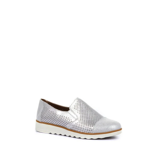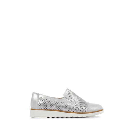 A contemporary twist of a classic slip-on style, metallic leather is decorated with an eye-catching cut-out design. Resting on an extra light contrast sole it adds a shimmering option for your dressed down days, a metallic toe cap completes the revitalising spring style.
