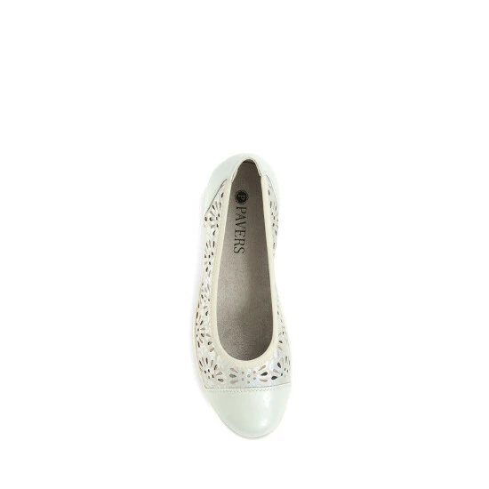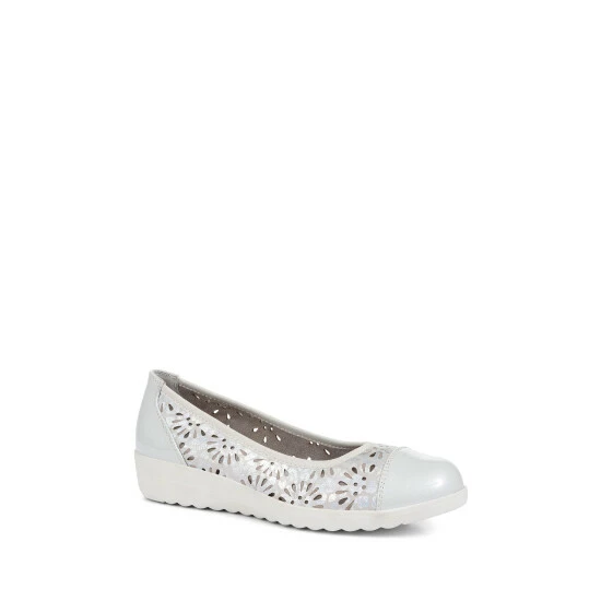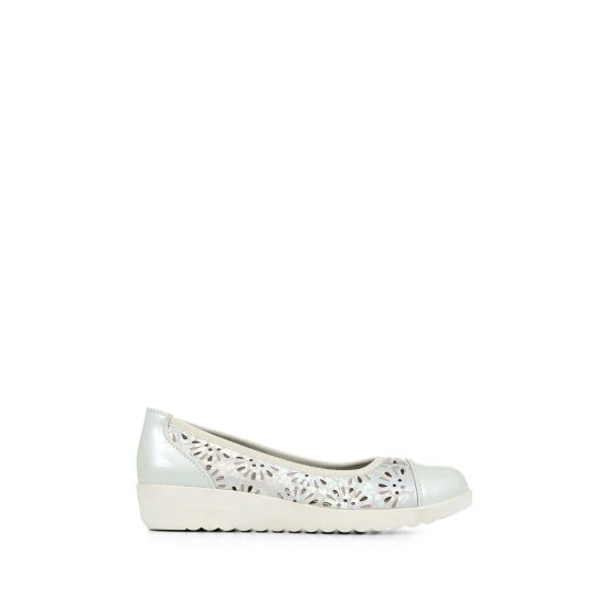The perfect pumps for summer? These ballet shoes are ideal for hot-weather days! Made with floral cut-out detail they ensure a breathable support for a lasting fresh foot feeling, and the lightweight wedge heel will keep you feeling comfortable and supported all day long. Finished metallic decoration and our signature cushioned footbed.