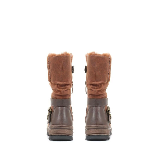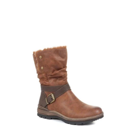 The ladies’ biker boot is a classic style for the cooler months and beyond. Reinvented for the upcoming season, these ladies’ biker boots are imagined in a slouch silhouette for a relaxed feel. Lined with soft faux fur for a cosy feel, the boots are decorated with a strap and buckle for added attitude.