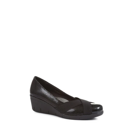 As part of our smart shoe collection, these classic court shoes have been made with a difference. Set on a low, lightweight heel, these smart shoes are made to keep your feet feeling comfortable thanks to the supportive heel and extra cushioned insole. The two crossing elastic straps add a stylish twist that will ensure a secure fit.