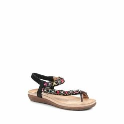 Pavers Ladies Embellished Toe-Post Sandals Gold
